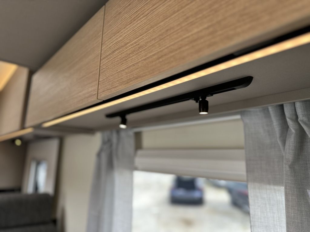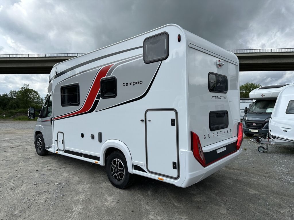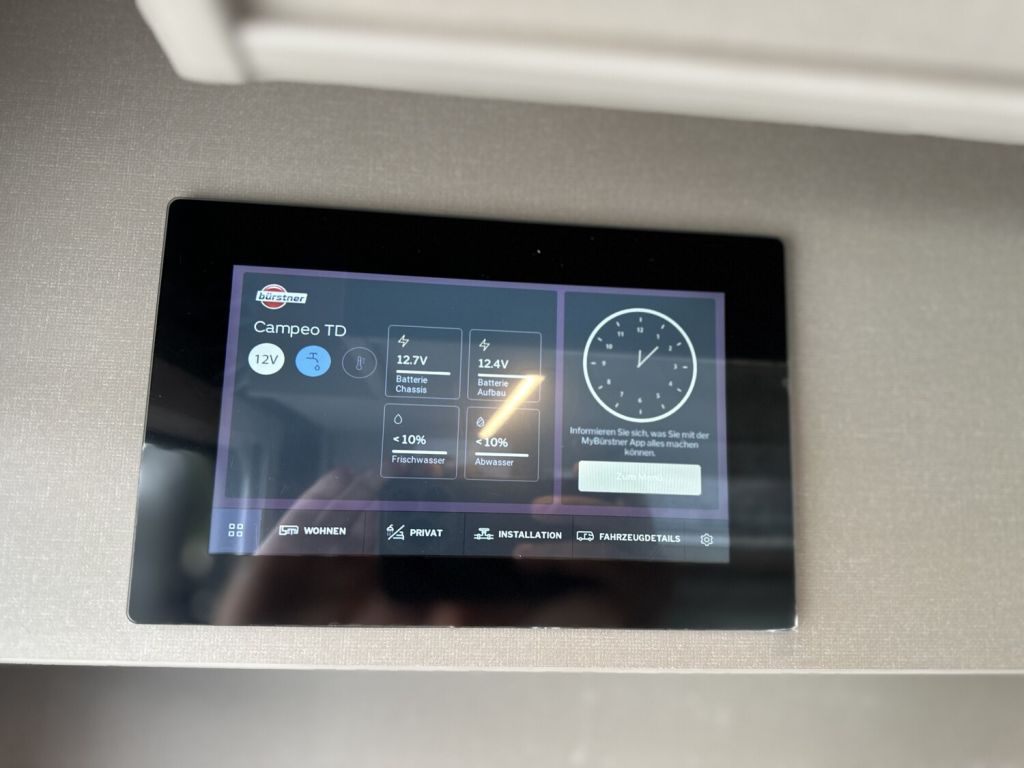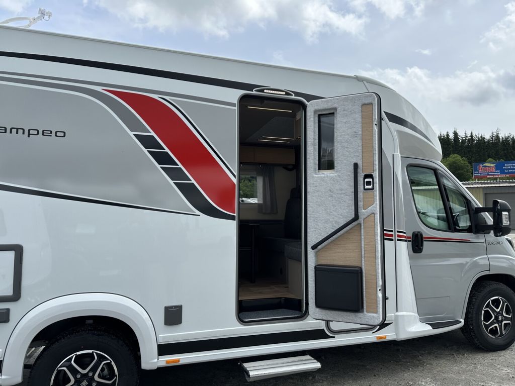 - Komfort Paket 1 (Fahrerhausverdunkelung, Cassettenplissees Front- und Seitenscheiben, Garagenklappe in Fahrtrichtung links, Sun-Roof (Aufstellbar, mit Verdunkelung und Fliegenschutz), Aufbautür breite Ausführung (mit Fenster und Zentralverriegelung), Alurahmenfenster, Dachfenster 50 x 70 cm mit Verdunkelungsrollo und Fliegenschutz im Wohnbereich, Elektrisch ausfahrbare Einstiegsstufe, Licht Paket, 7 Display für My Bürstner App)