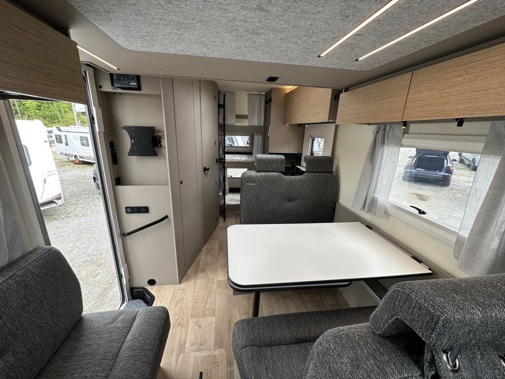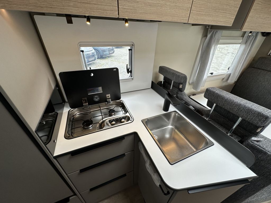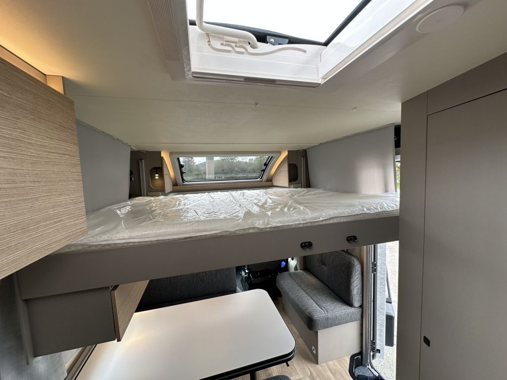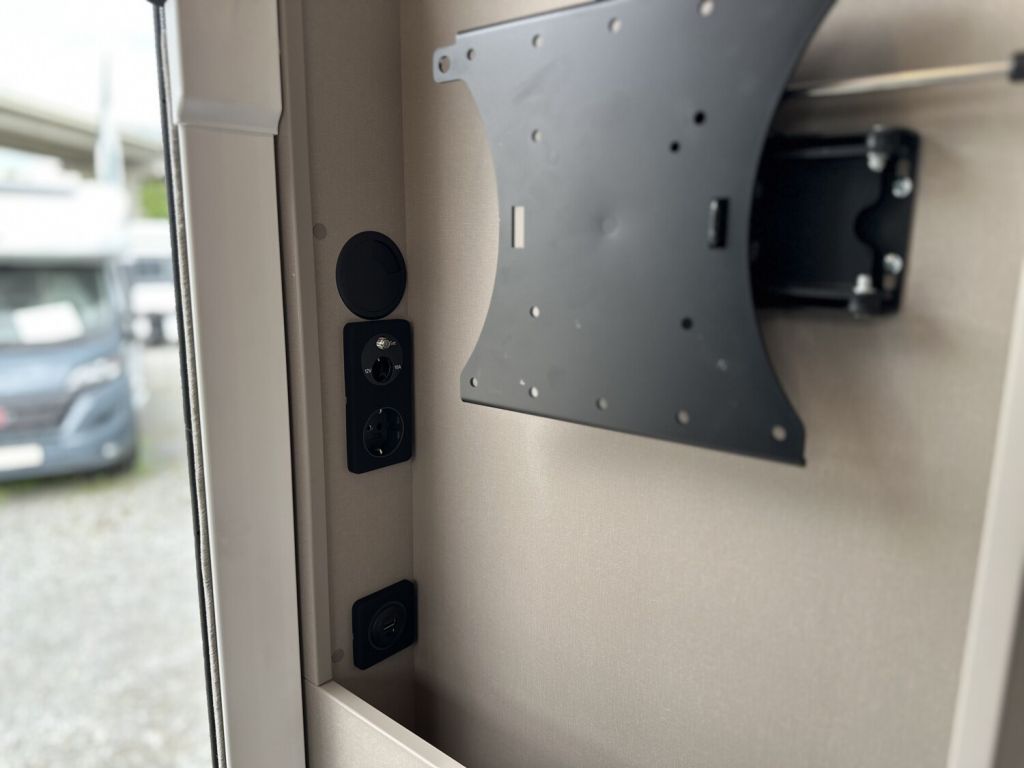 - Komfort Paket 1 (Fahrerhausverdunkelung, Cassettenplissees Front- und Seitenscheiben, Garagenklappe in Fahrtrichtung links, Sun-Roof (Aufstellbar, mit Verdunkelung und Fliegenschutz), Aufbautür breite Ausführung (mit Fenster und Zentralverriegelung), Alurahmenfenster, Dachfenster 50 x 70 cm mit Verdunkelungsrollo und Fliegenschutz im Wohnbereich, Elektrisch ausfahrbare Einstiegsstufe, Licht Paket, 7 Display für My Bürstner App)