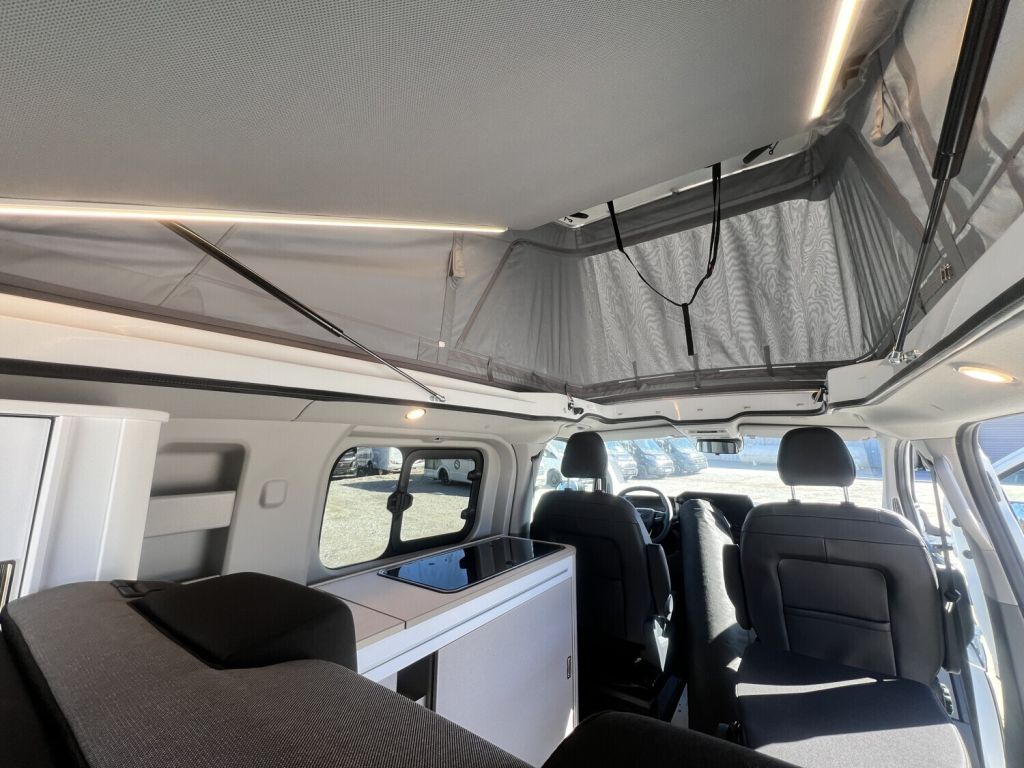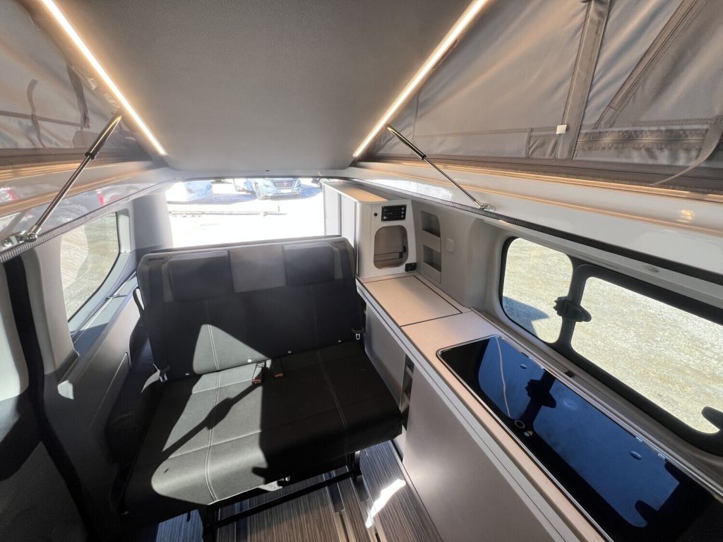 - Holiday Paket (C500) (Verdunkelung Wohnraum und Fahrerhaus, 3. und 4. Sitzplatz auf Sitzbank inkl. Isofix, Schlaffunktion und Staubox, 4 Zurrösen für Schienenboden, Liegeflächenerweiterung für Schlafbank)