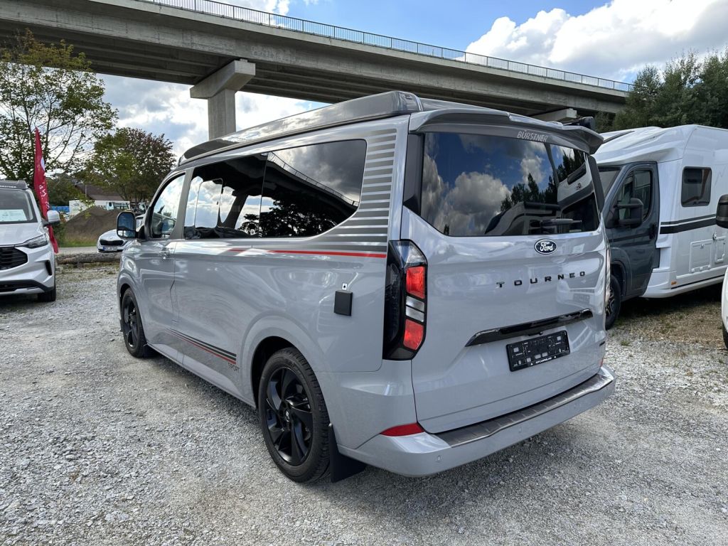 - Ausstattungslinie Sport (Ford Tourneo Custom V710 – FWD, 136 PS, 6-Gang-Schaltgetriebe, 17 Zoll Alufelge in Karbongrau, Tempomat, Spurhalteassistent inkl. Müdigkeitswarner, Verkehrsschild-Erkennungssystem, Pre-Collision Assistent 2.0, Frontspoiler in Wagenfarbe lackiert, Stoffbezug Black Onyx im Fahrerhaus, 13″ Multifunktionsdisplay mit 5 Lautsprechern, Allwetterreifen, Zusätzliche Alufelgen in schwarz matt mit Sommerreifen, Frontspoilerlippe in Wagenfarbe, Heckspoiler in Wagenfarbe lackiert, Fahrerhausteppich “Individual Limited Edition”, Zusatzfolierung “Copa Sport”, Sportliche Außengrafik, Ladekantenschutz schwarz eloxiert, Seitenschutzleiste in Wagenfarbe lackiert)