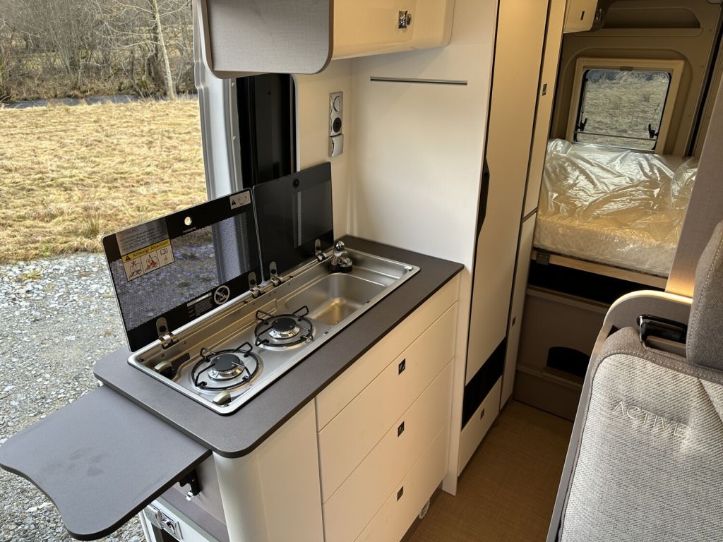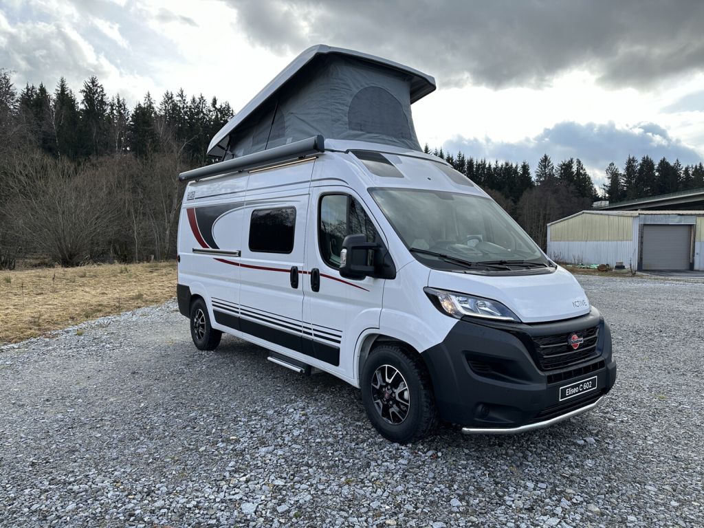- Active Paket Eliseo (nur bei 3.500 kg light oder maxi) (Alufelgen 16 Zoll für 3.500 kg Light Fahrgestell, Sonderproduktgrafik “Active”, Polster mit eigener Steppung “Active”, Spoilerschutzrohr)