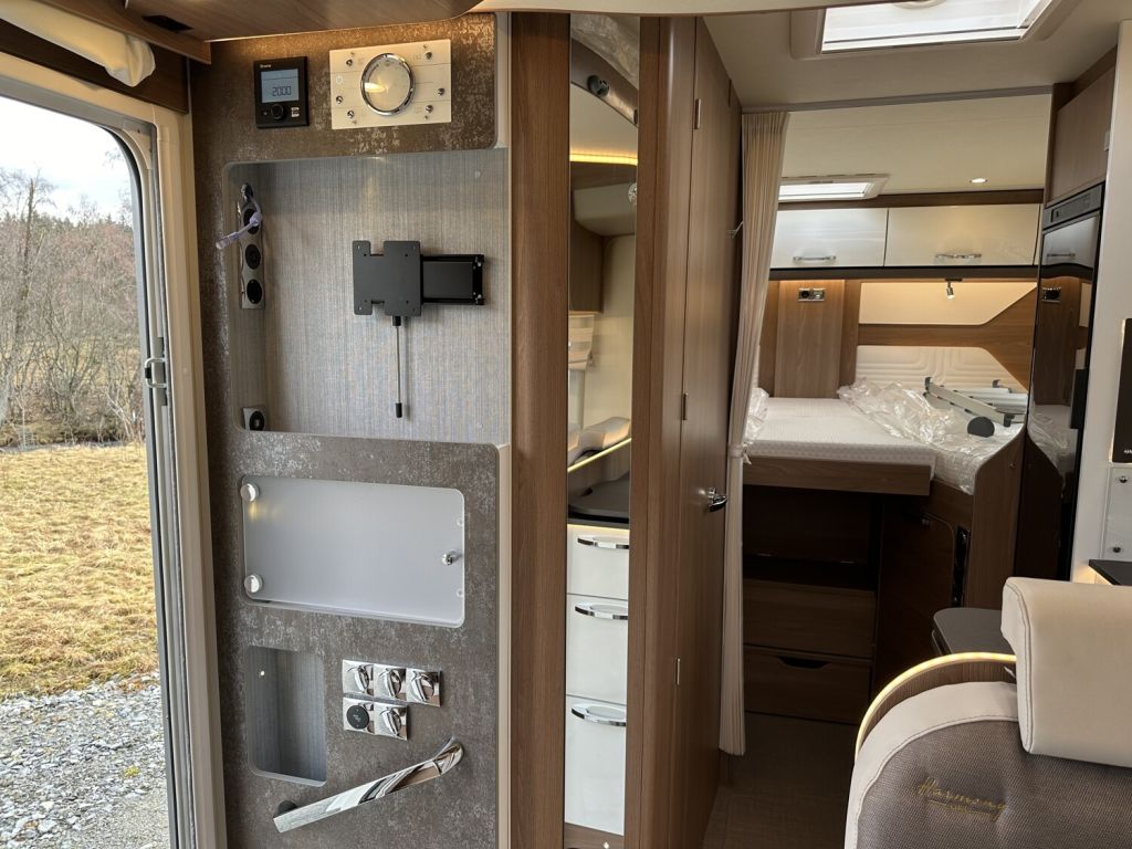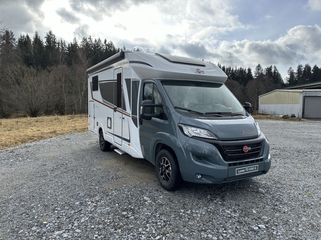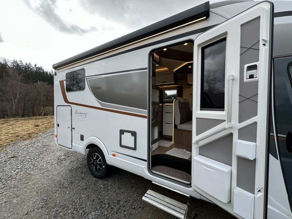 - Harmony Line Paket (690) (Alufelgen 16 Zoll, Alurahmenfenster, Aufbautür Premium inkl. Zentralverriegelung Fahrer- und Aufbautür, Fenster, Fliegenschutzrollo und Ladestation für Homelight, Außenspiegel elektrisch verstell- und beheizbar, Drehbare Arbeitsplattenerweiterung, Fahrerhausverdunkelung, Cassettenplissees Front- und Seitenscheiben, Garagenklappe in Fahrtrichtung links, Heckstoßstange mit Chrom-Applikationen, Kapselhalter, Kühlergrill mit Bürstner Logo, schwarz, Lederlenkrad und Lederschaltknauf, Pilotensitze mit Armlehnen, Polster bezogen wie Wohnraum, Produkt Außengrafik Harmony Line, Polster Bestickung “Harmony Line”, Eingangselement mit Design Dekor, Scheinwerfer mit schwarzem Rahmen, Seitenwandverkleidung Küche, Sun-Roof (Aufstellbar, mit Verdunkelung und Fliegenschuzt), Traction Plus, Beleuchtete Truhenrückwand, Indirekte Beleuchtung Dachschränke, Indirekte Beleuchtung unterhalb der Arbeitsplatte, Beleuchteter Spiegel im Toilettenraum, Indirekte Küchenblockbeleuchtung, Variorollos)