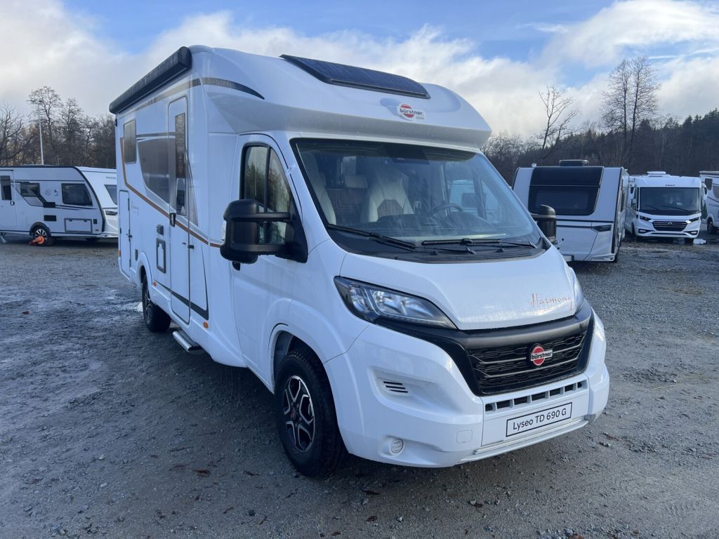 - Harmony Line Paket (690) (Alufelgen 16 Zoll, Alurahmenfenster, Aufbautür Premium inkl. Zentralverriegelung Fahrer- und Aufbautür, Fenster, Fliegenschutzrollo und Ladestation für Homelight, Außenspiegel elektrisch verstell- und beheizbar, Drehbare Arbeitsplattenerweiterung, Fahrerhausverdunkelung, Cassettenplissees Front- und Seitenscheiben, Garagenklappe in Fahrtrichtung links, Heckstoßstange mit Chrom-Applikationen, Kapselhalter, Kühlergrill mit Bürstner Logo, schwarz, Lederlenkrad und Lederschaltknauf, Pilotensitze mit Armlehnen, Polster bezogen wie Wohnraum, Produkt Außengrafik Harmony Line, Polster Bestickung “Harmony Line”, Eingangselement mit Design Dekor, Scheinwerfer mit schwarzem Rahmen, Seitenwandverkleidung Küche, Sun-Roof (Aufstellbar, mit Verdunkelung und Fliegenschuzt), Traction Plus, Beleuchtete Truhenrückwand, Indirekte Beleuchtung Dachschränke, Indirekte Beleuchtung unterhalb der Arbeitsplatte, Beleuchteter Spiegel im Toilettenraum, Indirekte Küchenblockbeleuchtung, Variorollos)