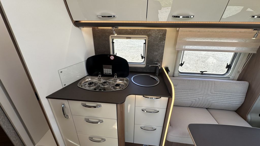 - Harmony Line Paket (727 / 736) (Alufelgen 16 Zoll, Alurahmenfenster, Aufbautür Premium inkl. Zentralverriegelung Fahrer- und Aufbautür, Fenster, Fliegenschutzrollo und Ladestation für Homelight, Außenspiegel elektrisch verstell- und beheizbar, Fahrerhausverdunkelung, Cassettenplissees Front- und Seitenscheiben, Garagenklappe in Fahrtrichtung links, Heckstoßstange mit Chrom-Applikationen, Kühlergrill mit Bürstner Logo, schwarz, Lederlenkrad und Lederschaltknauf, Pilotensitze mit Armlehnen, Polster bezogen wie Wohnraum, Produkt Außengrafik Harmony Line, Polster Bestickung “Harmony Line”, Eingangselement mit Design Dekor, Scheinwerfer mit schwarzem Rahmen, Seitenwandverkleidung Küche, Sun-Roof (Aufstellbar, mit Verdunkelung und Fliegenschuzt), Traction Plus, Beleuchtete Truhenrückwand, Indirekte Beleuchtung Dachschränke, Indirekte Beleuchtung unterhalb der Arbeitsplatte, Beleuchteter Spiegel im Toilettenraum, Indirekte Küchenblockbeleuchtung, Variorollos)