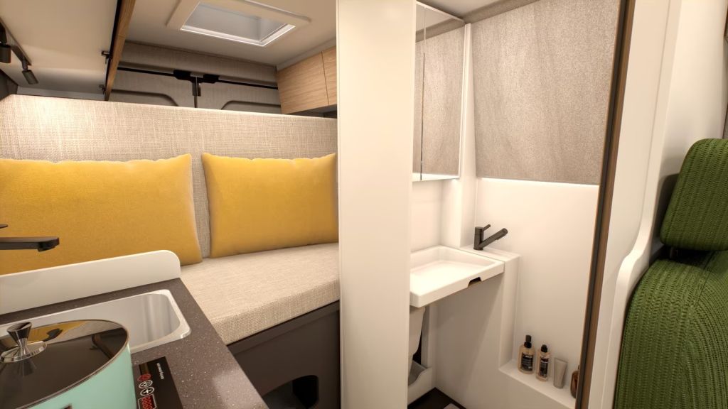 - Komfort-Pack Aufbau ( Fliegenschutzplisee für Schiebetür, Dachhaube Toilettenraum 28 x 28 cm mit Fliegenschutz, Dachfenster 50 x 70 cm mit Verdunklungsrolle und Fliegenschutz im Wohnbereich, Ambiente – Beleuchtung, Innenverkleidung stoffbezogen, Fenster beidseitig in Hecktüre, Rahmenfenster hinten links in Fahrtrichtung, Rahmenfenster Sitzgruppe, Rahmenfenster Schiebetür, Fahrerhausverdunkelung, Cassttenplissees Front- und Seitenscheiben, Elektrisch ausfahrbare Einstiegsstufe).