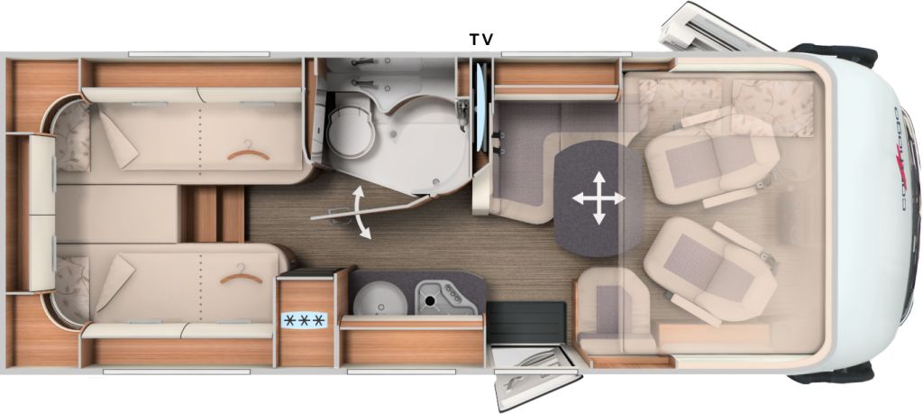 • Wohn-Komfort-Paket bestehend aus: oLightweight Einstiegstreppe mit Liegeflächenerweiterung oMultifunktionale Spülabdeckung inkl. Schneidebrett für zusätzliche Wandaufnahme zur Arbeitsflächenerweiterung oRegalboden unter dem Längseinzelbett