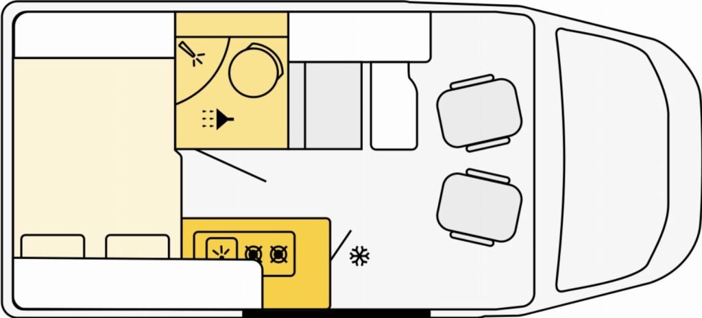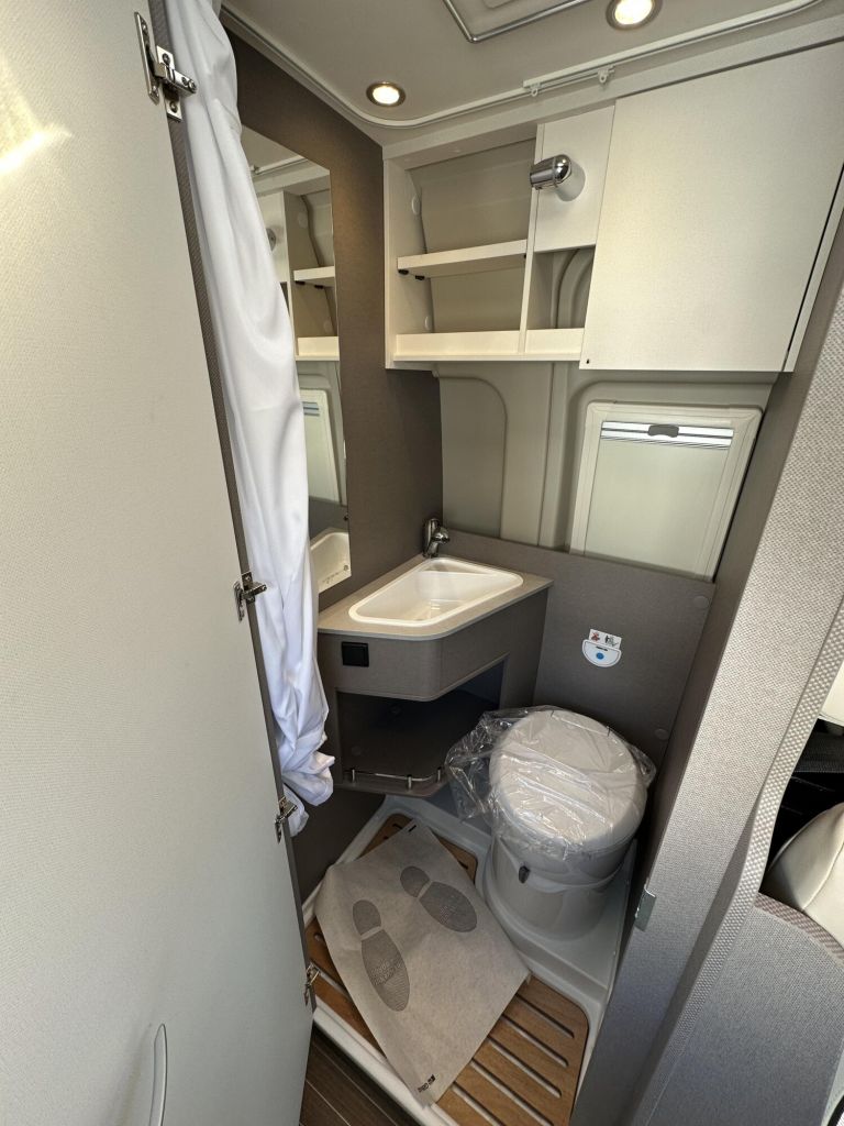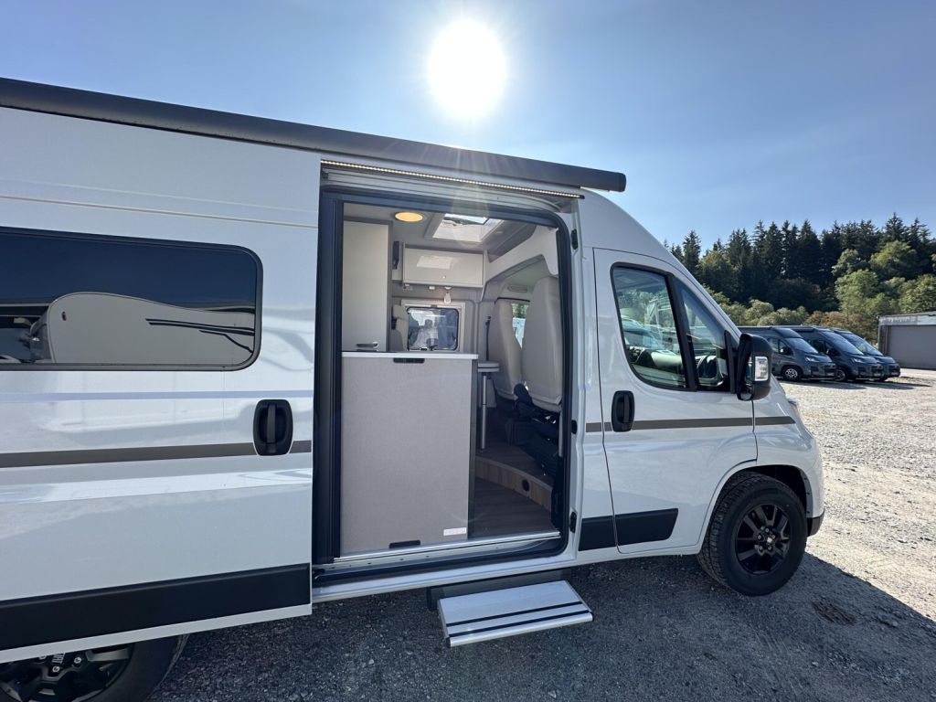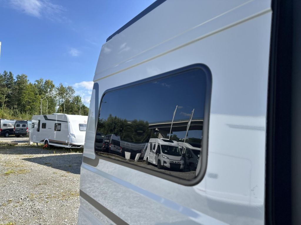 - Komfort Paket (Einlegeboden in der Dusche, Fenster im Bad, Fahrerhausjalousien, Elektrische Trittstufe, Fliegengittertür, Drehplatte für Tischerweiterung an der Sitzgruppe, Vorzeltleuchte) bereits in Complete Selection enthalten