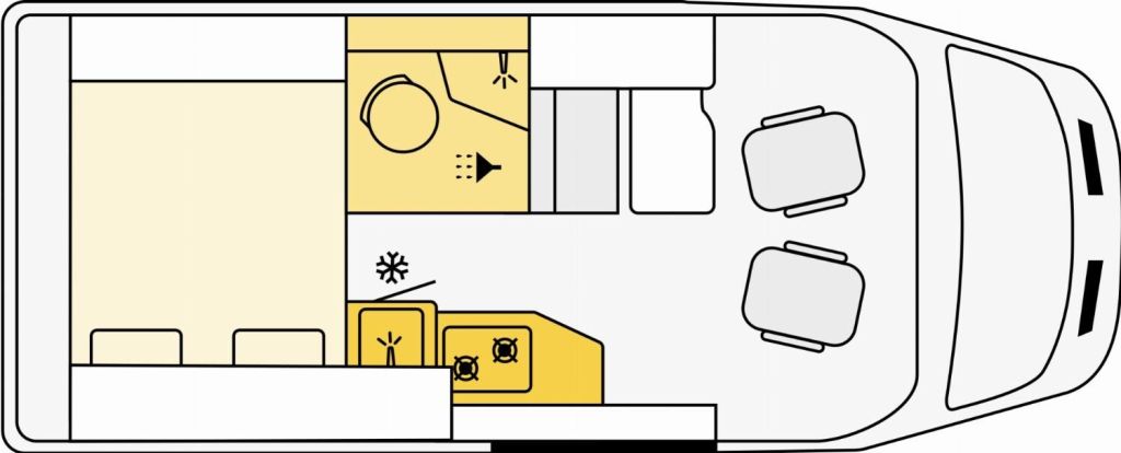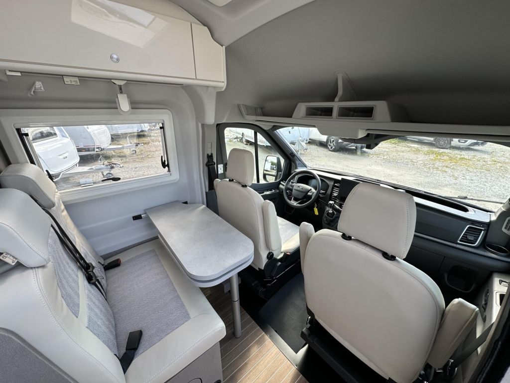 - Komfort Paket (Einlegeboden in der Dusche, Fenster im Bad, Fahrerhausjalousien, Elektrische Trittstufe, Fliegengittertür, Drehplatte für Tischerweiterung an der Sitzgruppe, Vorzeltleuchte) in Complete Selection enthalten
