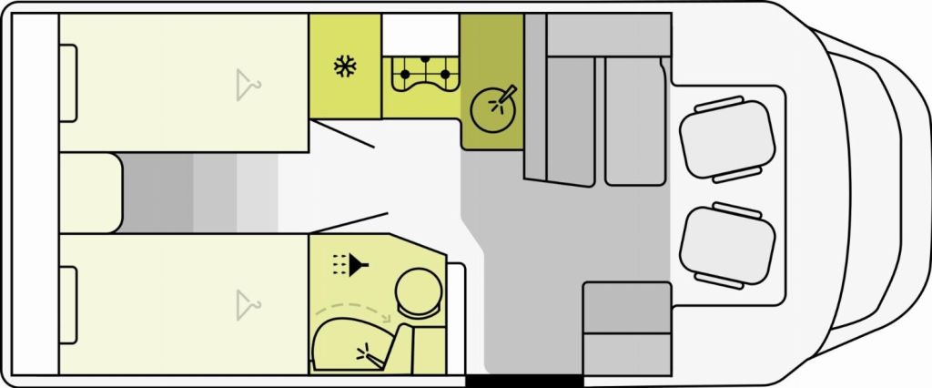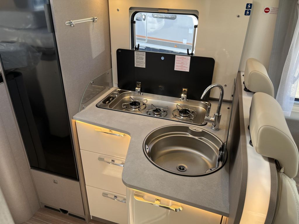 - Komfort Paket (Spiegel und Garderobenhaken, Holzlattenrost in der Dusche, Fahrerhaussitze inkl. Wohnraumbezügen, Steckdose im Küchenblock, Steckdose in der Garage) in Complete Selection enthalten