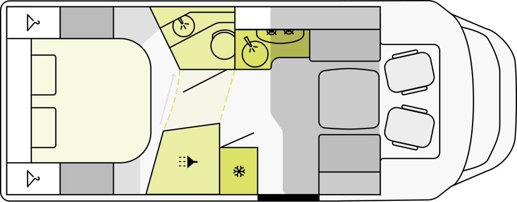 Heimweh unmöglich! Wenn Du mit Deinem Teilintegrierten auf Fiat Basis die Welt eroberst, fühlst Du Dich an jedem Ort so wohl wie zuhause und lässt Dich voll und ganz auf die Schönheit des Augenblicks ein. Betritt den Wohnraum durch die breite Aufbautür mit Fenster und freu Dich: Von den Betten über die Küche bis hin zum großzügigen Bad – der mobile Traumurlaub verspricht Erholung und Freiheit an jedem Ort.