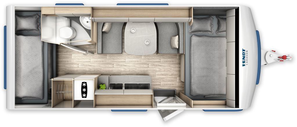 - Teppich im Türeinstieg mit Fendt-Caravan-Schriftzug