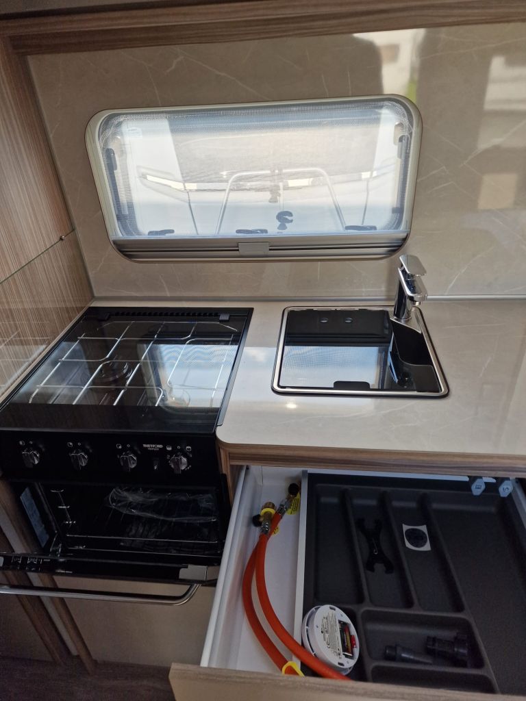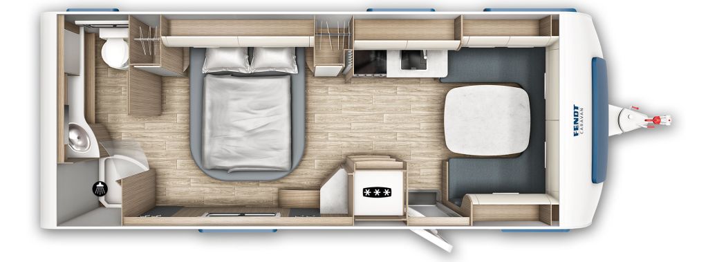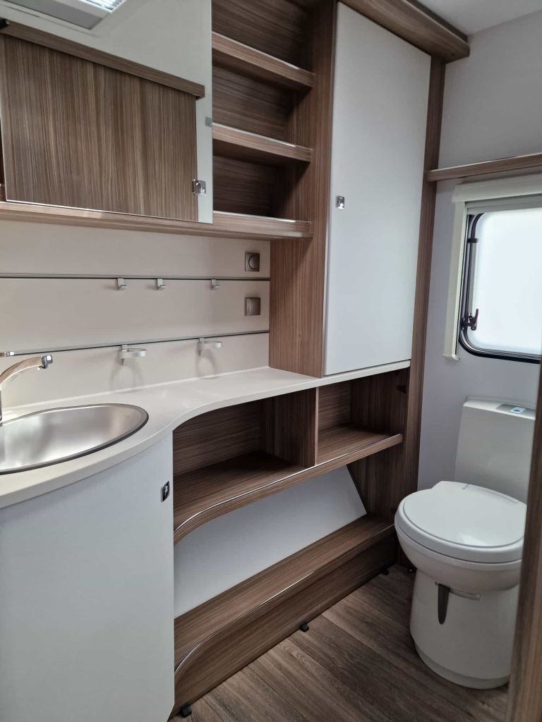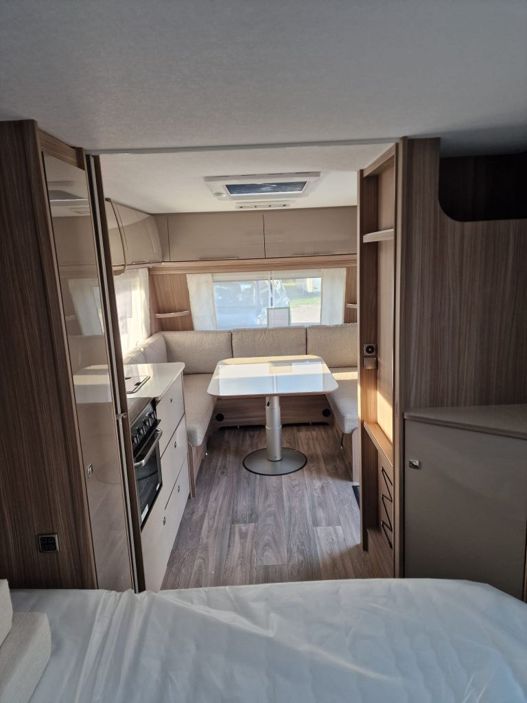 2.500 KG Fahrwerk, Safety-Paket (ATC Trailer Control, Gasdruckregler DuoControl CS mit Gasfilter, Diebstahlsicherung Fullstop mechanisch), Shower-Paket VII (City-Anschluss für 45 Liter Frischwassertank, Elektrobetrieb Truma C6, Fußbodentemperierung elektr., Batterie-Paket IV mit Li-Fe Batterie 150 Ah, Universal-Vorzeltsteckdose, Stabilformstütze verzinkt mit “Big Foot”