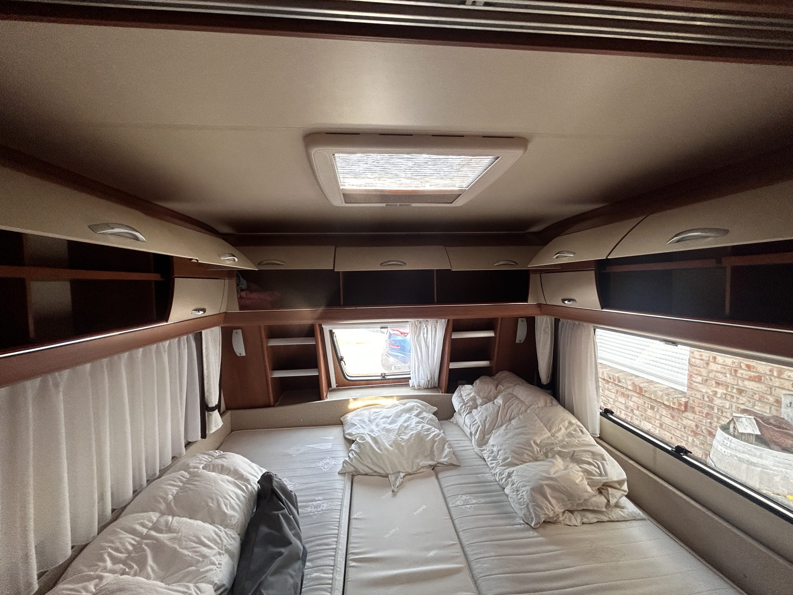 Der Wohnwagen ist in einem super Zustand. Er verfügt über 2 Einzelbetten im Bug, eine gemütliche Rundsitzecke im Heck, einen großen Kühlschrank und einen Mover.