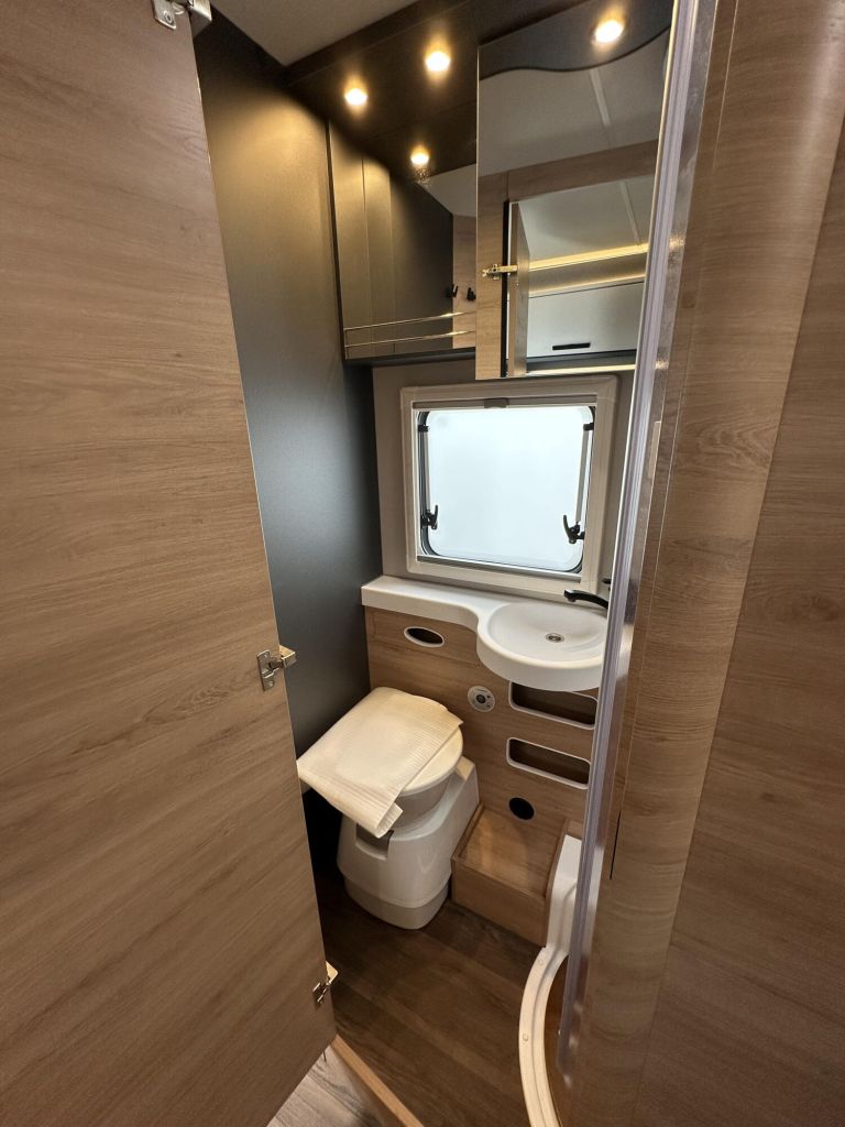 • Ausstellfenster 52 x 50 cm, mit Insektenschutz und Verdunklung (Toilettenraum)