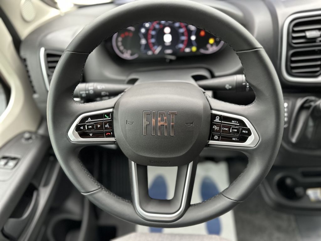 - FIAT Paket – Teilintegriert (Nebelscheinwerfer mit Abbiegelicht, Vorbereitung für Multimedia, Schublade unter Sitzen, Frontstoßfänger in Wagenfarbe lackiert, Spoilerlippen (skid-plate), Höhenverstellung Beifahrersitz, Traktionshilfe “Traction Plus”, inkl. Bergabfahrhilfe, Außenspiegel elektrisch einstell- und beheizbar)