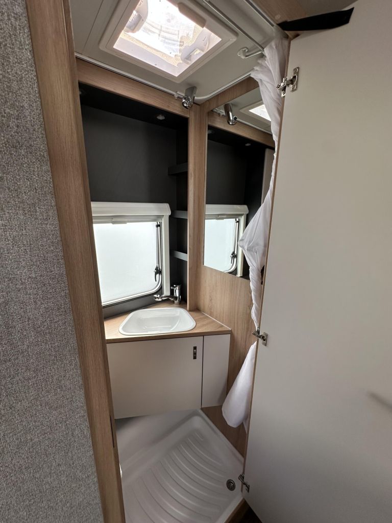 - Design-Paket – Monoachser (17″ Leichtmetallfelgen ? Monoachser, Titanmetallic lackiert im exklusiven KNAUS Design, Seitenwände in Glattblech ? Monoachser, KNAUS Embleme im Bug und im Heck, schwarz/chrom, Deichselabdeckung)