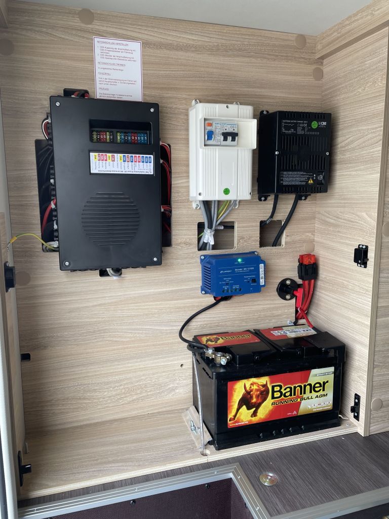 vernetzbares Elektronik-System inkl. zentralem Control-Panel mit Anzeige für Status der Batterien, Frisch- und Abwassertanks und Stromanschluss
