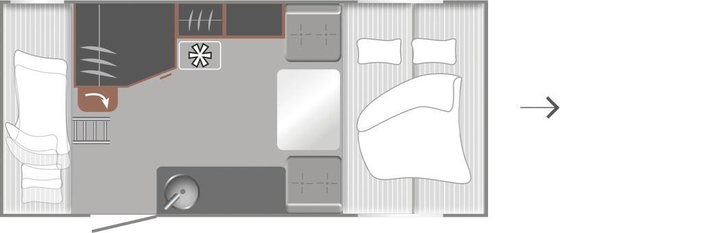 – Ohne Gasanlage, Küchenblock ohne Kochstelle und Kühlschrank, Kühlbox im Ausstattungspaket enthalten