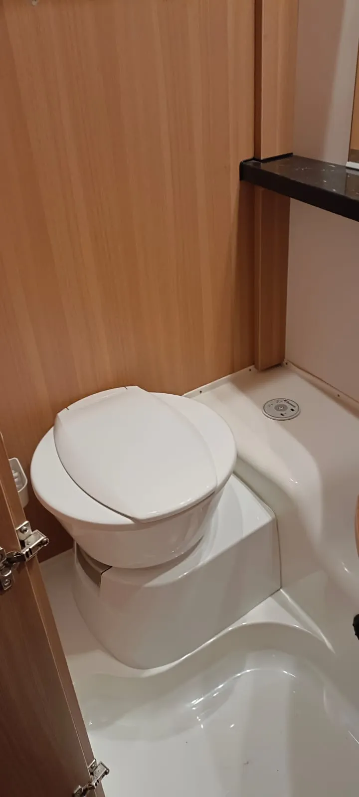 * Bad mit Kassettentoilette und Waschbecken sowie großen Spiegel