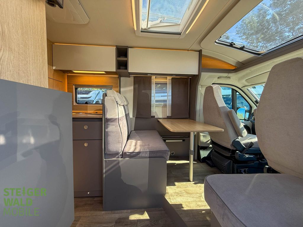 • Tourer Paket: Multifunktionslenkrad mit Bedienelement, Lenkrad und Schaltknauf (Lederausführung), Aluminiumfelgen 16″, Fliegenschutztür, Vorbereitung SAT, Klimaanlage, Solar inkl. Dachverstärkung, Vorbereitung Solar, Dachhaube Midi-Heki, Panoramafenster (T-Haube), Traktion Plus, Beleuchtungsspots im Bodenbereich, Indirekte Beleuchtung Küchenrückwand, Indirekte Beleuchtung ober- und unterhalb der Hängeschränke, LED-Leisten im Schlafbereich, Faltrollosystem Fahrerhaus