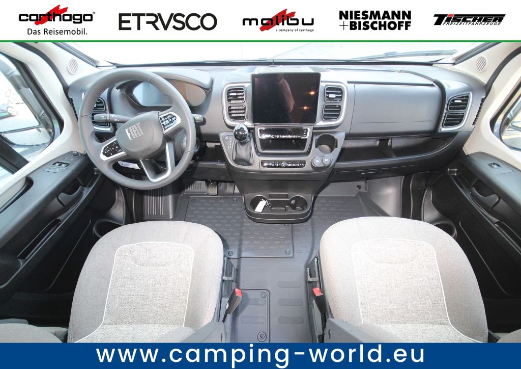 Fahrassistenz-Paket nur i.V.m. Chassis-Plus-Paket und Multimediasystem Fiat 10,1″; bei Wahl des Fahrassistenz-Paketes gibt es beim Fahrerhausverdunklungssystem im Bereich der Kameraposition (oben mittig) einen Ausschnitt für das Kameragehäuse.