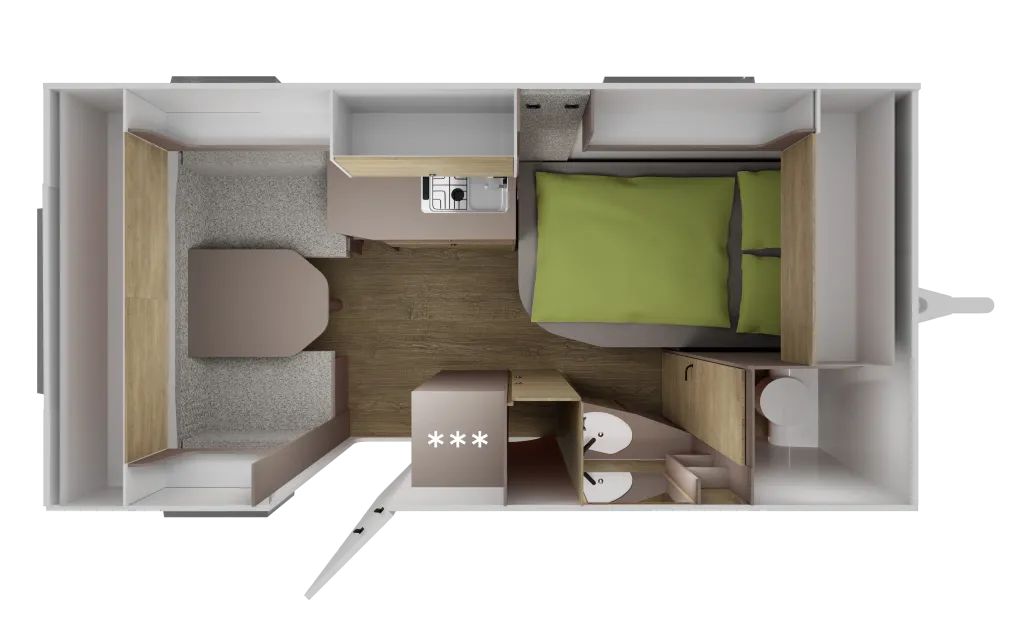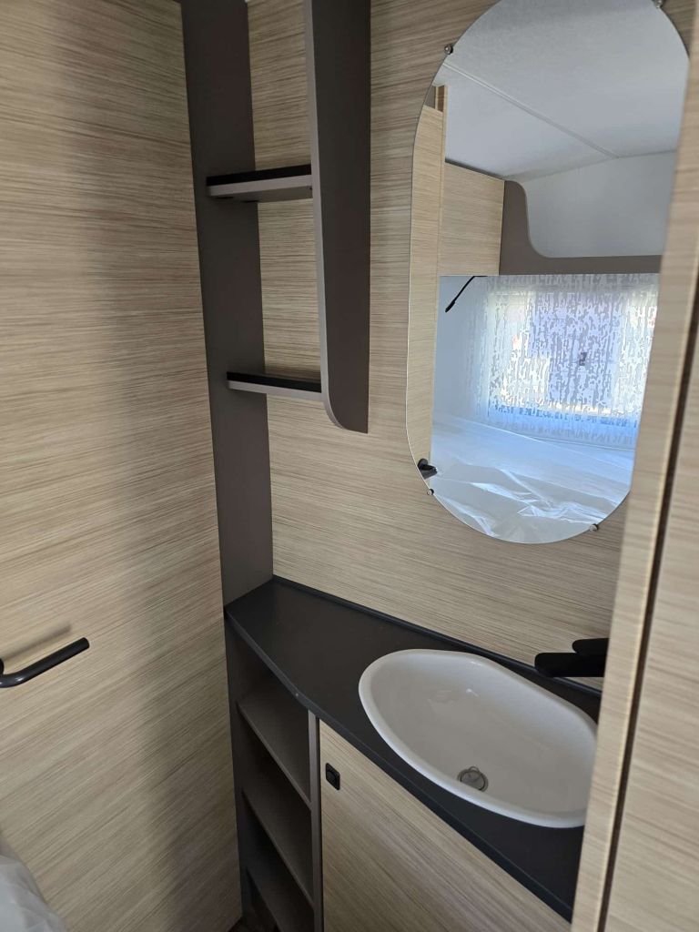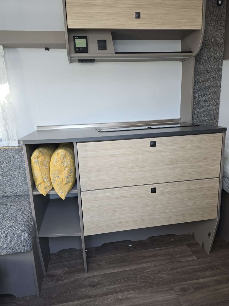 Paket NXtec 1.3(Außenstauklappe 999 x 419 mm Bug links, Gewichtserhöhung 1.300 KG, Fahrradträger auf Deichsel für 2 Räder), Paket NXcom Fliegenschutz Eingangstür, Warmwasser Truma Therme), Sicherheitskupplung AKS 3004