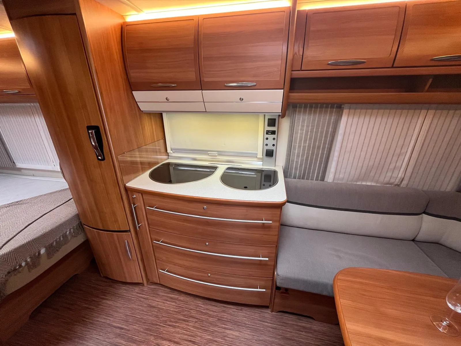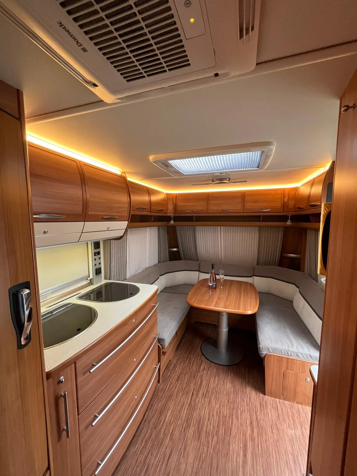 Dieser Wohnwagen mit Vollausstattung lässt keine Wünsche offen und bietet alles, was man für komfortable und entspannte Reisen benötigt. Die Thule-Markise samt kompletter Vorzeltanlage ist fix im Gesamtpaket enthalten.
