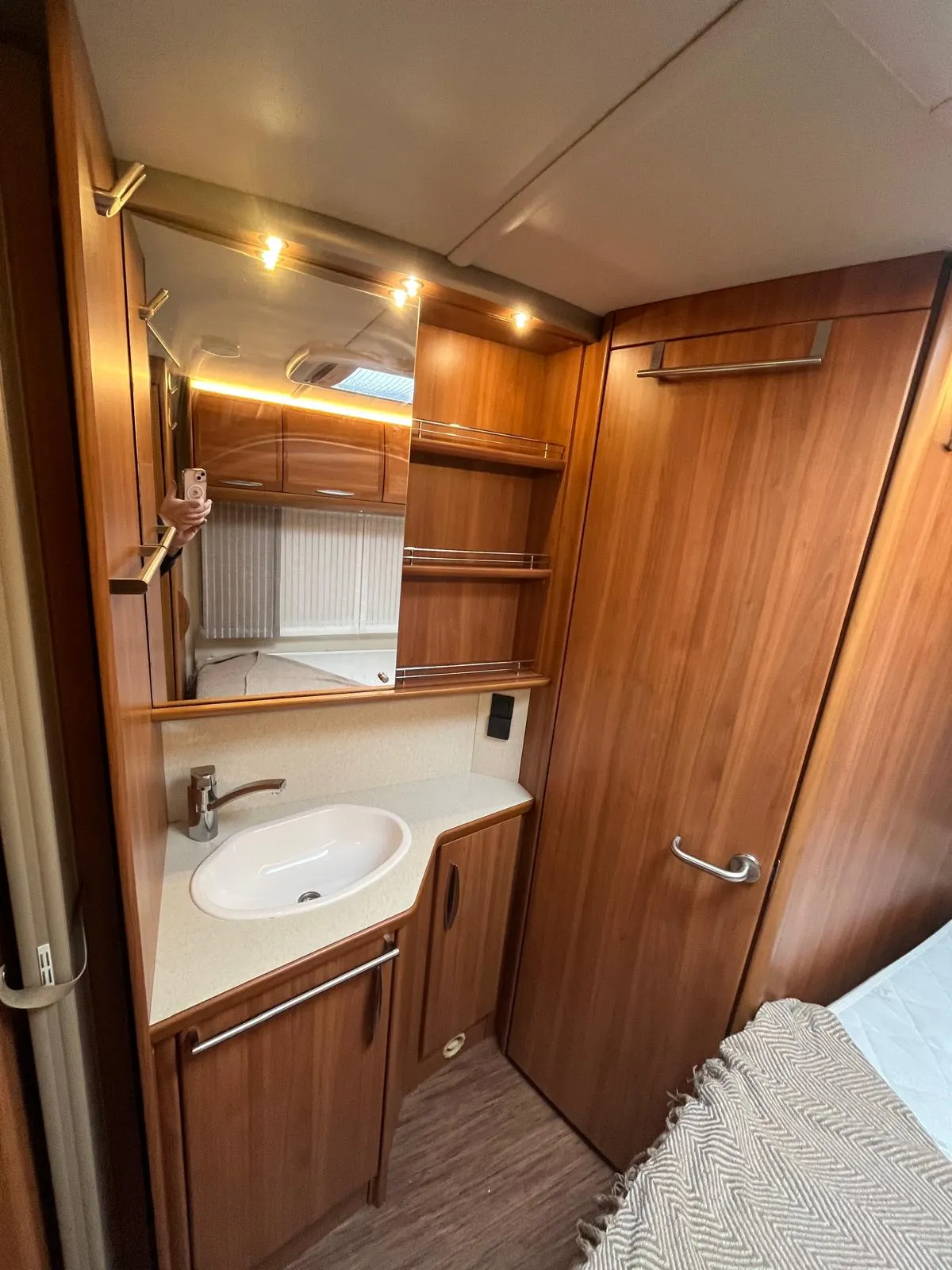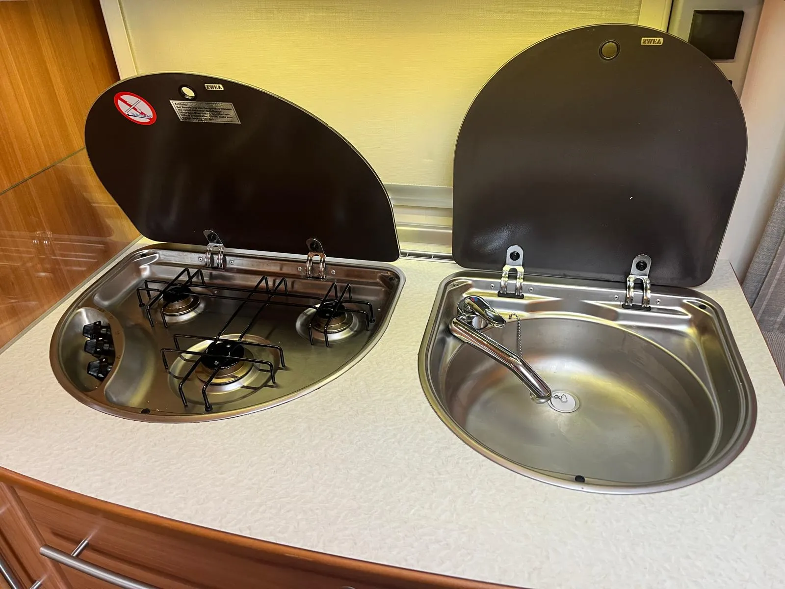 Auch außen überzeugt der Wohnwagen mit durchdachten Details wie Außensteckdose, Citywasseranschluss und einem praktischen Geschirrspüler, damit man den Urlaub in vollen Zügen genießen kann. Ein Reservereifen ist selbstverständlich mit an Bord.