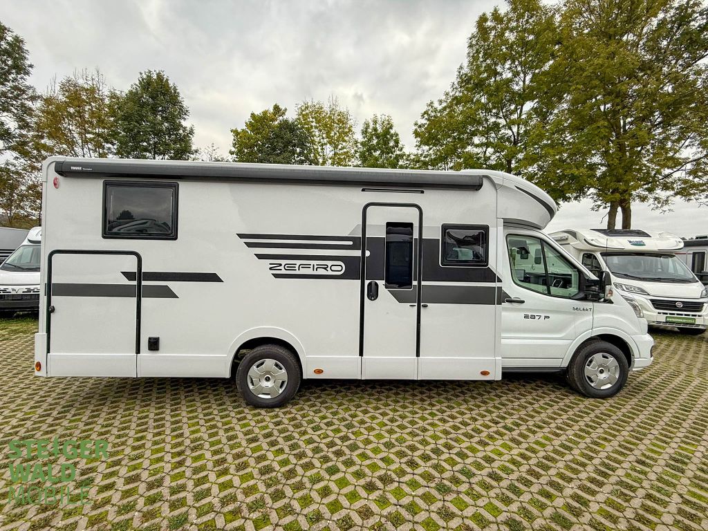 - PAKET ZEFIRO FORD: 165 PS Light Duty Motor; “High Series” Hauptscheinwerfer; Abschlie?bares Handschuhfach; “TREND” Innendekor; Frontsto?stange und seitliche Zierstreifen in Wagenfarbe; XL Aufbautür mit zwei Schlie?punkten, Fenster und Zentralverriegelung; Markise anthrazit (4 m bei Modellen 295 TL und 285 TL, 4,5 m. bei Modellen 282 TL; 266 TL; 267 TL und 287 TL); Gas Aussensteckdose; Externe Dusche (Anschluss in der Garage); 200 W Solar Panel mit MPPT Laderegler; Plissee Verdunkelung im Fahrerhaus