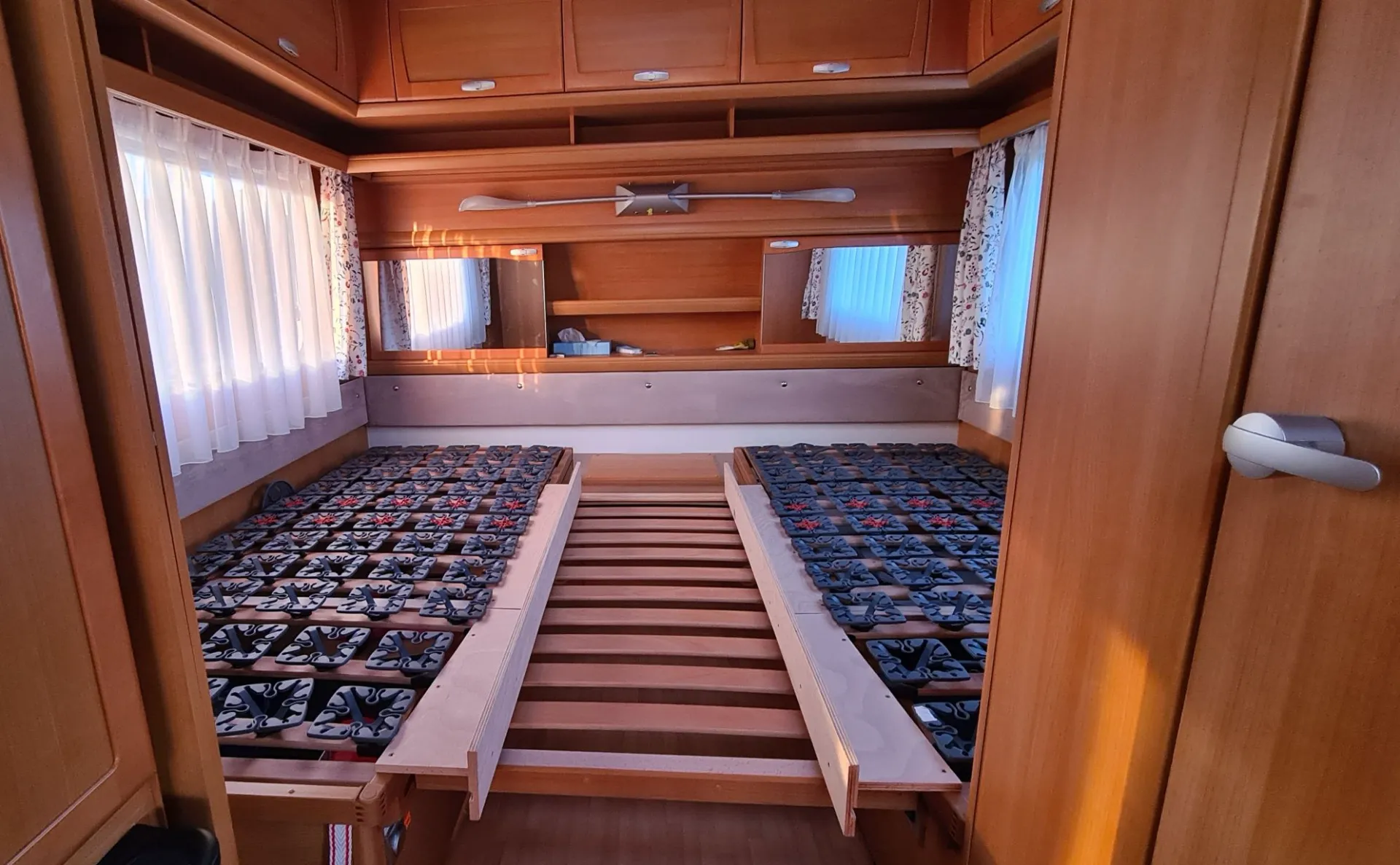Das extra angefertigte Polster zwischen den Betten wird mitgegeben.