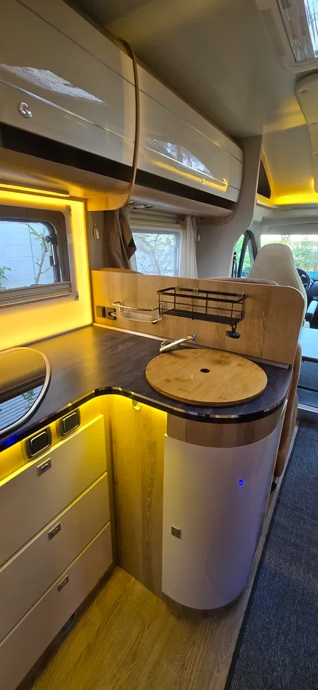 Das Wohnmobil war bei Nichtbenutzung wettergeschützt in einer Halle gelagert, ist absolut trocken und hat uns immer zuverlässig zu unseren Zielen und zurückgebracht. Neben der eh schon sehr umfangreichen Ausstattung hat der Wagen noch weitere Nachrüstungen bekommen, um das Reisen noch praktischer und angenehmer zu machen.