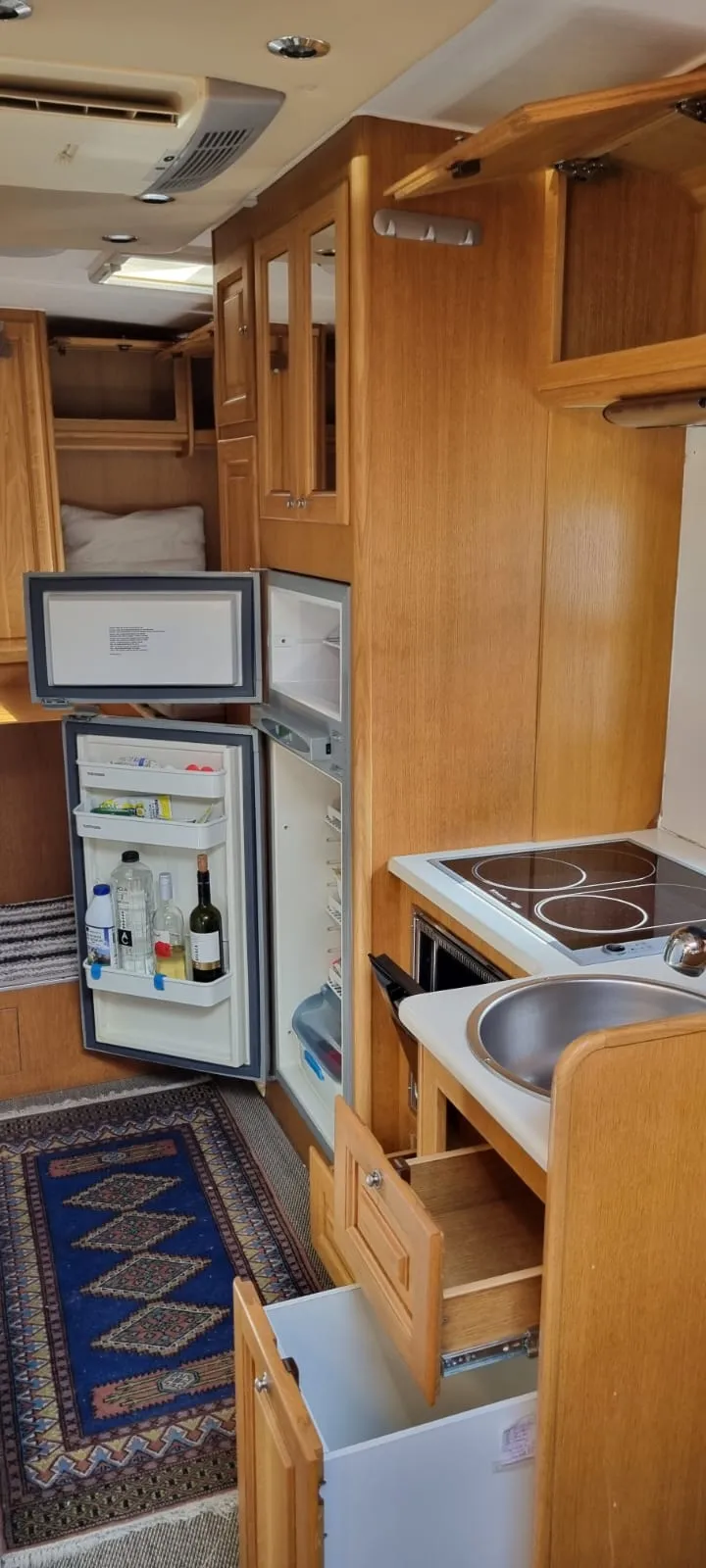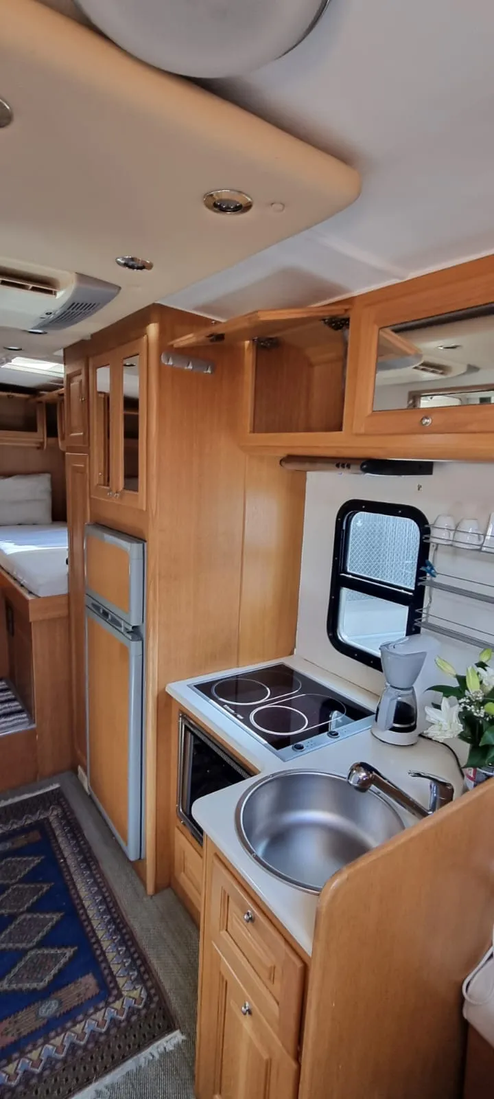 Maurer Aufbau mit Slide out Wohnzimmer, 4 Schlafplätze, el. Fahrradlift, Ladehilfe mit seilwinde für Roller oder Motorrad, Mastervolt Stromkontrollanlage, grosses Fiamma Vorzelt 5m x2.5m, ausgestattet mit hydr. Niveoausgleich- und Stützsystem, Sonnenkollektoren, Stromgenerator, Klimaanlage, Satellitenschüssel mit 2 TV, Bose Stereoanlage, Kühlschrank mit Gefrierfach (Strom/Gas), Heizung (Strom/Gas), eingebauter Gastank mit anschluss für aussengasgrill, Kochherd/Backofen Gas, Dusche/WC, Aussenwasseranschluss Warm/Kalt, Kabelrolle un div. Zubehör